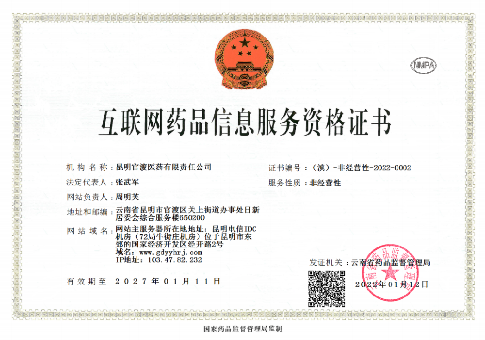 互聯(lián)網(wǎng)藥品信息服務(wù)資格證書